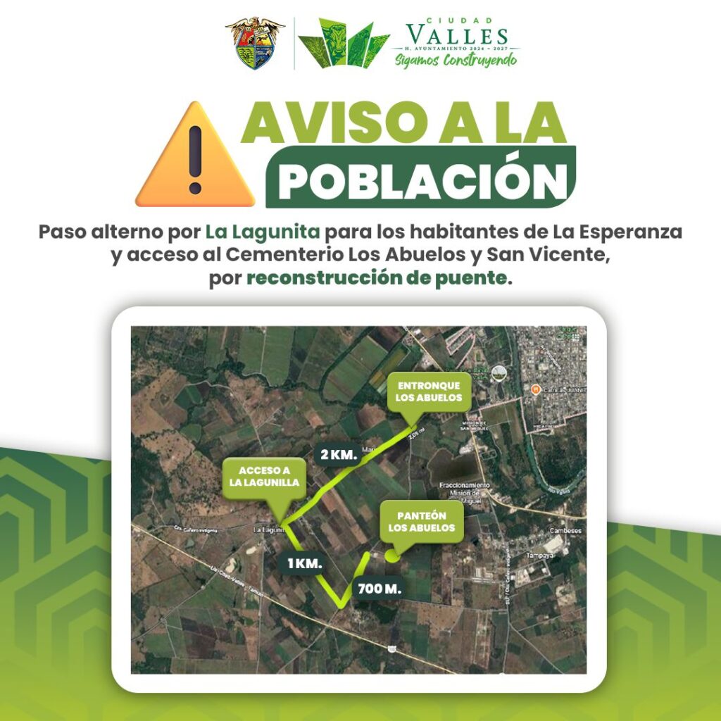 El H. Ayuntamiento de Ciudad Valles, a través de la Coordinación de Desarrollo Social (CODESOL), informa sobre los trabajos de rehabilitación que se estarán realizando a partir de este martes 4 de noviembre, en el puente conocido como “Los Abuelos”, y que conecta con la localidad de La Esperanza.