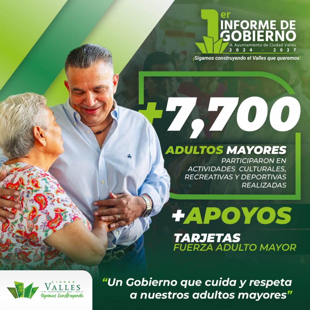 El Presidente Municipal David Armando Medina Salazar ha impulsado acciones para promover el bienestar, la integración y el respeto hacia las personas adultas mayores en Ciudad Valles, beneficiando a más de 7 mil adultos mayores con programas culturales, recreativos, deportivos y de apoyo directo.